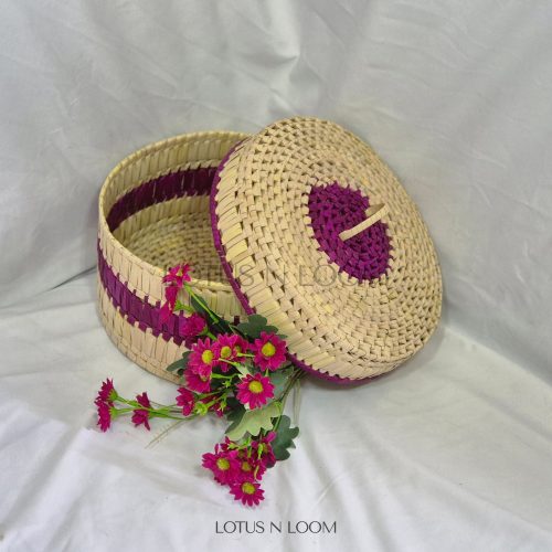 Hand Woven Storage Basket with lid – Pink